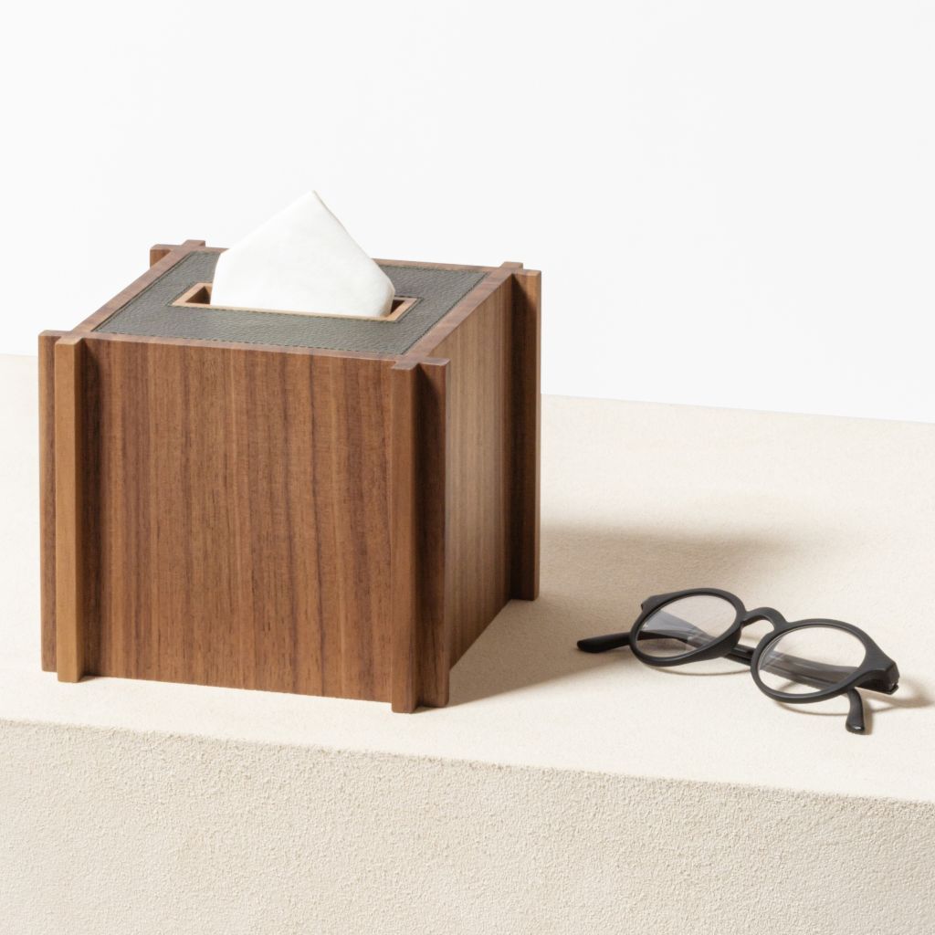 LEATHER&WOOD SQUARE TISSUE HOLDER - STRUCTURA