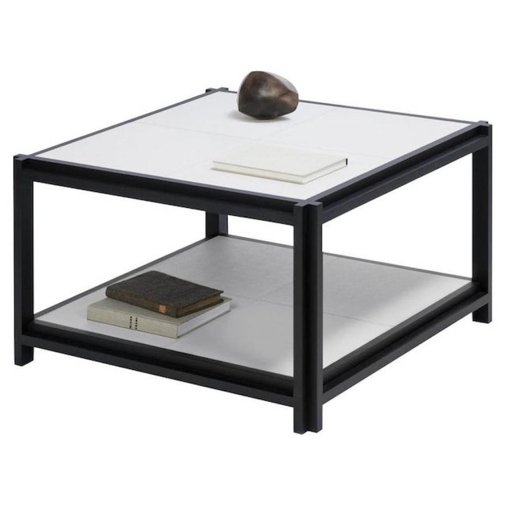 A collection of furniture that features a wooden structure in massif walnut or wengè with an architectural shape and inlaid leather tops.