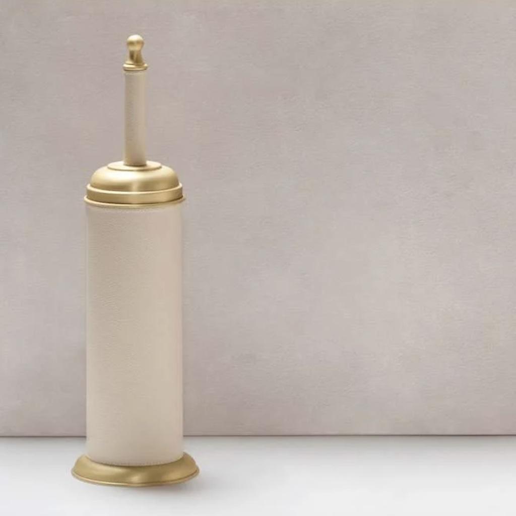 The Dubai bathroom collection features a series of articles with a fine leather-covered metal structure with different finishes of choice.