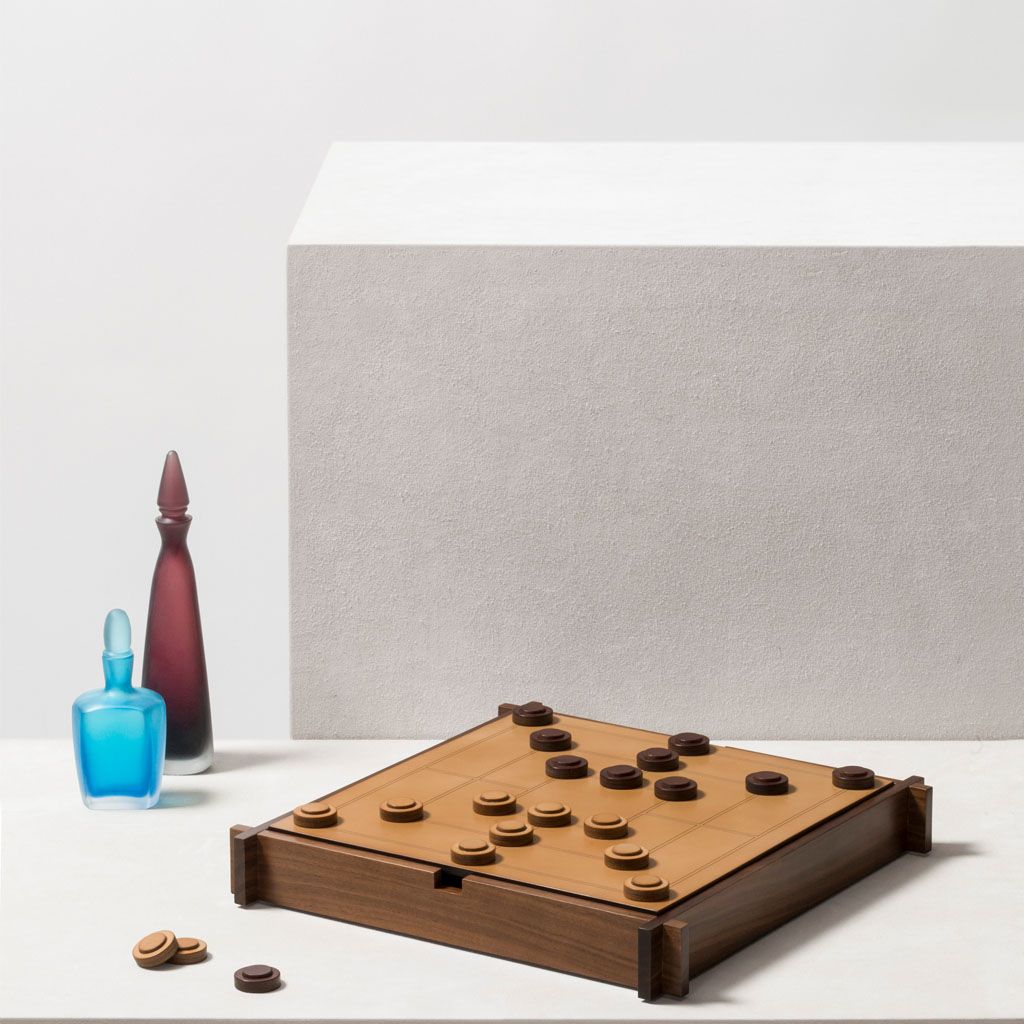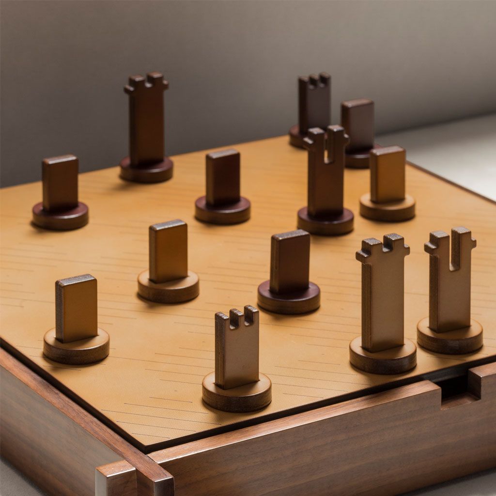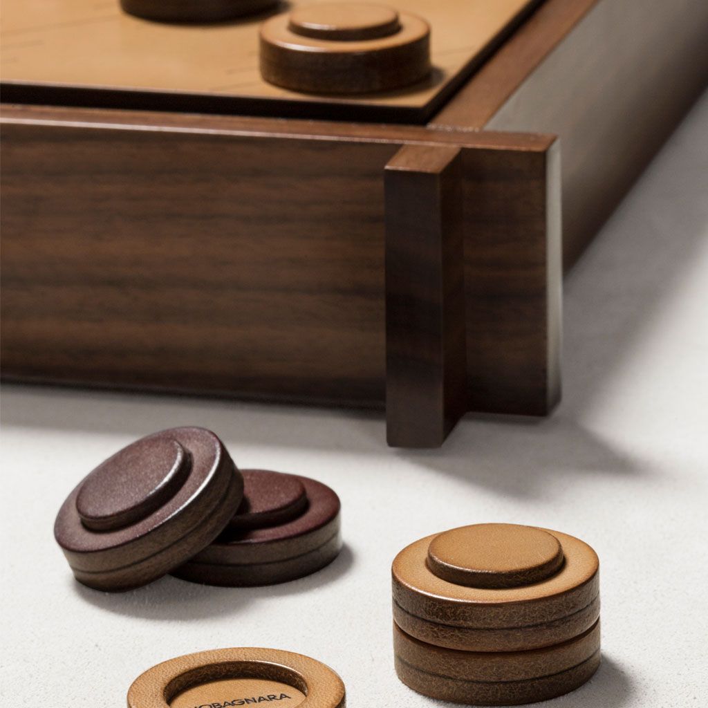 Includes sole leather chess and droughts made in brown and natural colors.