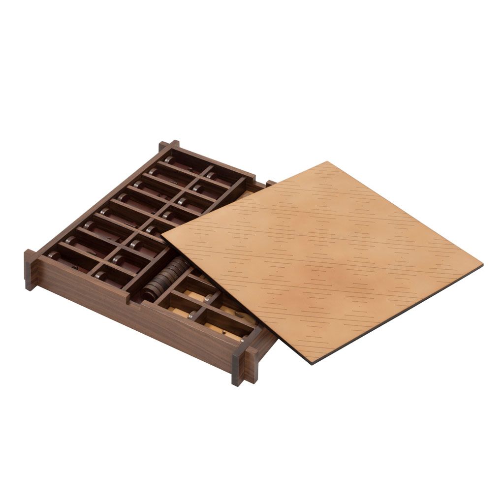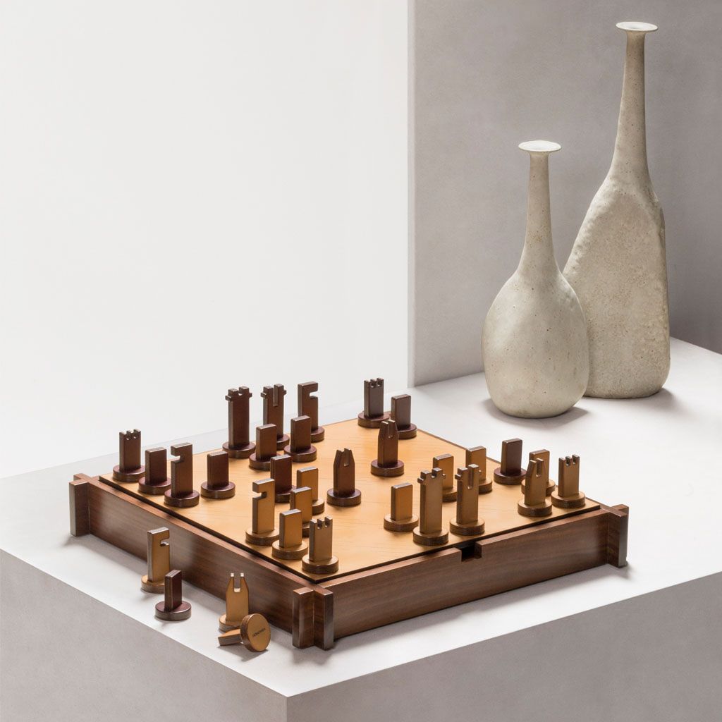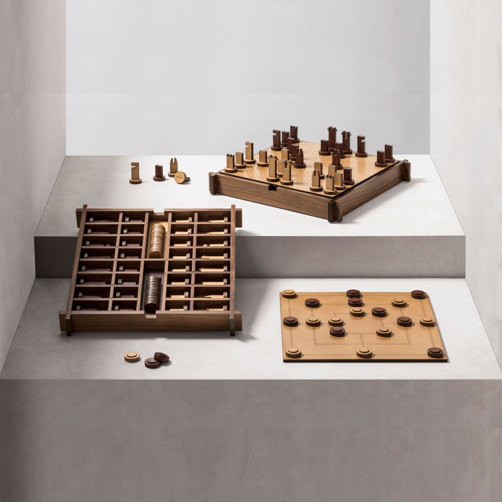 Includes sole leather chess and droughts made in brown and natural colors.