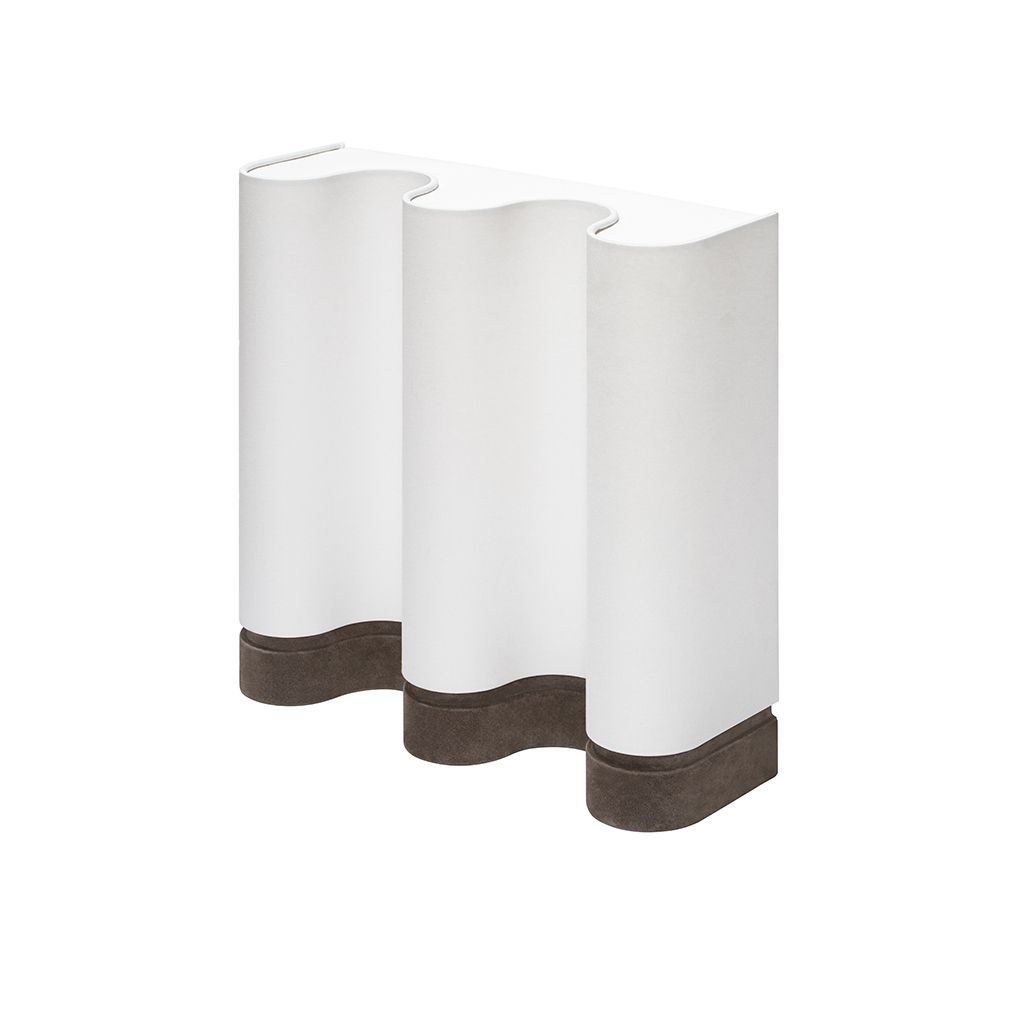 Their monumental volumes originate from both primal monolithic and contemporary minimal features entwined, while the lines are a reference to the "Jeu des Osselets", which has roots