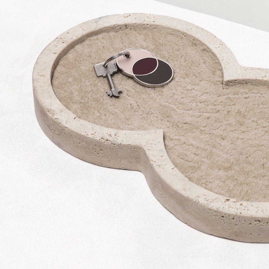 Created as a graphic homage to the architecture and stylized ornamentation of Italian palazzos, the Palazzo line combines travertine (an emblematic stone in Italy) with leather.