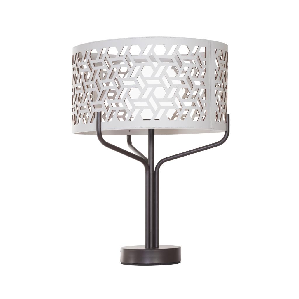 Family of lamps which features a metal structure that wraps around the perforated Tecnocuoio lampshade. The led light source grants high performance and low power consumption. Versailles lamps are available in the floor, table, abatjour and ceiling versions.