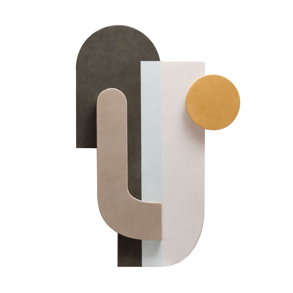 The fluid forms are covered in suede, introducing a novel material in the field of wall decoration.