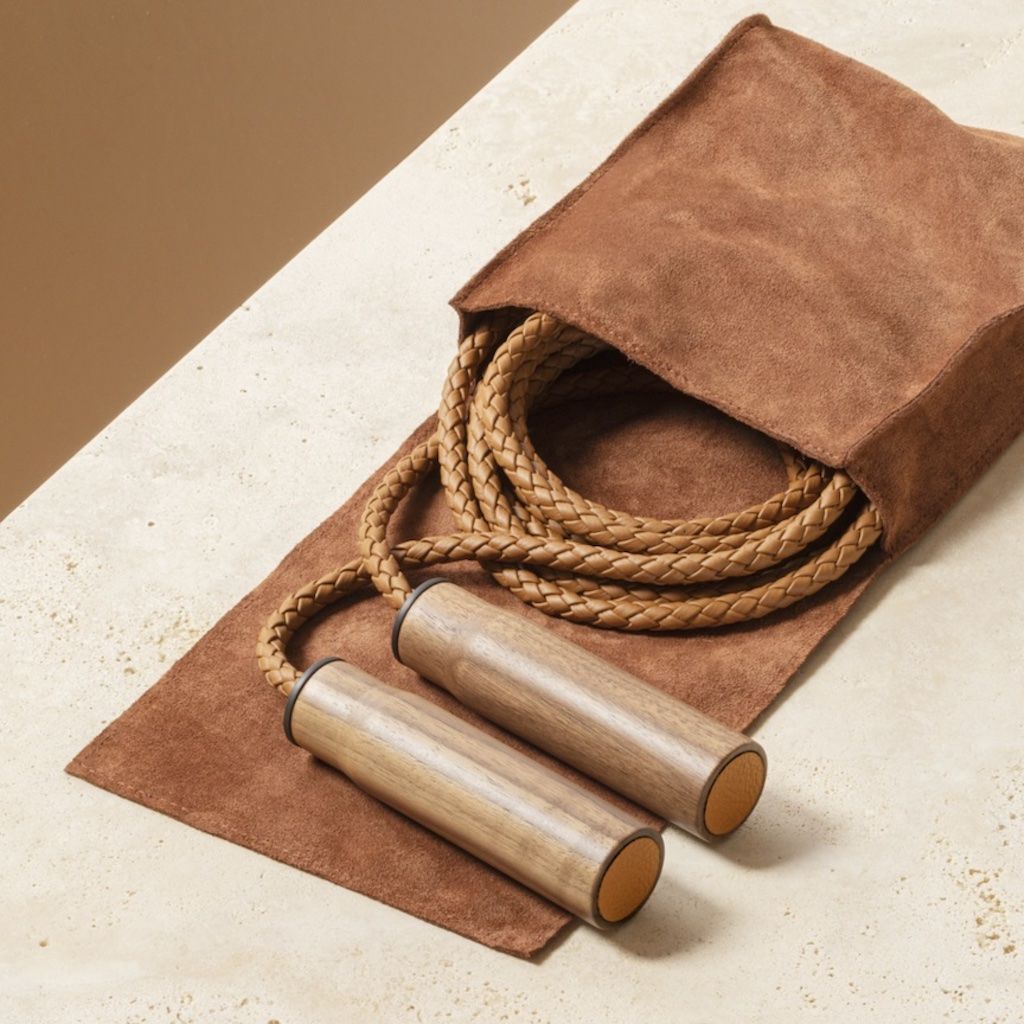 This jump rope is a sporty yet stylish accessory that can be used for both home workouts and as an eyecatching decor thanks to the !nely woven leather rope.