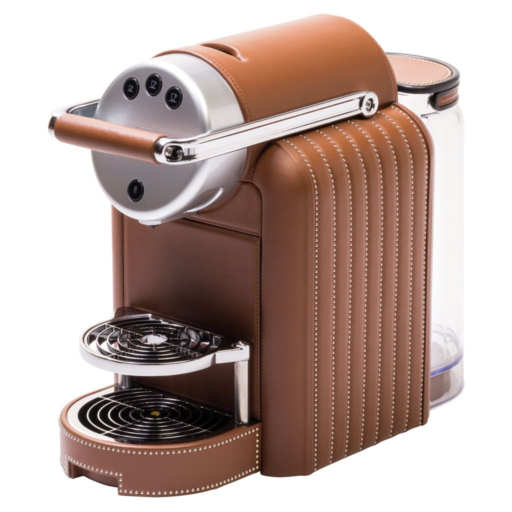 Original leather-bounded Nespresso machine with either a diamond or straight lines quilt pattern generated by the juxtaposition of small studs.